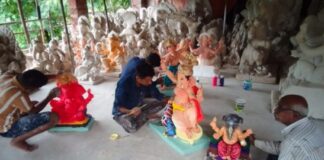 गणेशमूर्ती शाळांमध्ये रंगरंगोटीच्या कामात मूर्तिकार मग्न