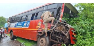 रत्नागिरी-आजिवली मार्गावर एसटी बसचा अपघात
