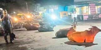 पावस परिसरातील रस्त्यावर मोकाट जनावरांचा ठिय्या