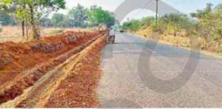 संगमेश्वर- देवरूख रस्त्याच्या साईडपट्टीची खोदाई करताना उखडले गाईड स्टोन