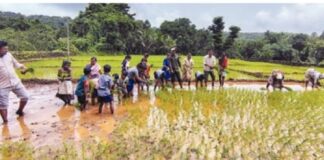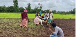वळके येथे चारसूत्री भात लागवड व ठोंबा नाचणी लागवडीचे प्रात्यक्षिक