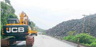 दाभोळे- मालपवाडीदरम्यान जुना महामार्ग पोकलेनमुळे उखडतोय