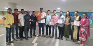 द्वितीय क्रमांक पटकावलेल्या ‘मी तर बुवा अर्धा शहाणा’ नाट्य मंडळाच्या कलाकारांच्या...