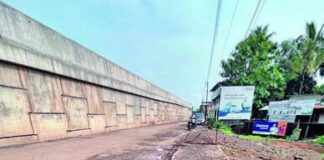 आरवलीतील सर्व्हिस रोडलगतचे गटार पहिल्याच पावसात तुटले