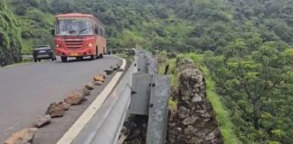 कुंभार्ली घाटात संरक्षण भिंत कोसळली
