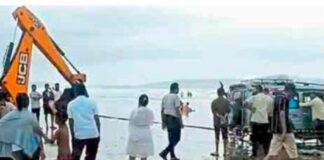 आरे-वारे समुद्र किनाऱ्यावर पर्यटकांची गाडी रुतली