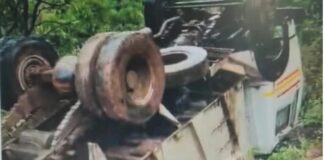दापोली : आंजर्ले येथे खडीने भरलेला डंपर पलटी