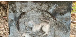 रत्नदुर्ग किल्ला परिसरात शरभ प्राण्याचे कोरीव अंकन असलेले दुर्मिळ वीरपुरुष स्मृतीस्मारक...